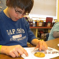 This was a science/reading activity. The students were determining the weight of the cookie as one piece and if the cookie would weigh the same after braking up the cookie into two piles one pile of cookie and one pile of chocolate chips.